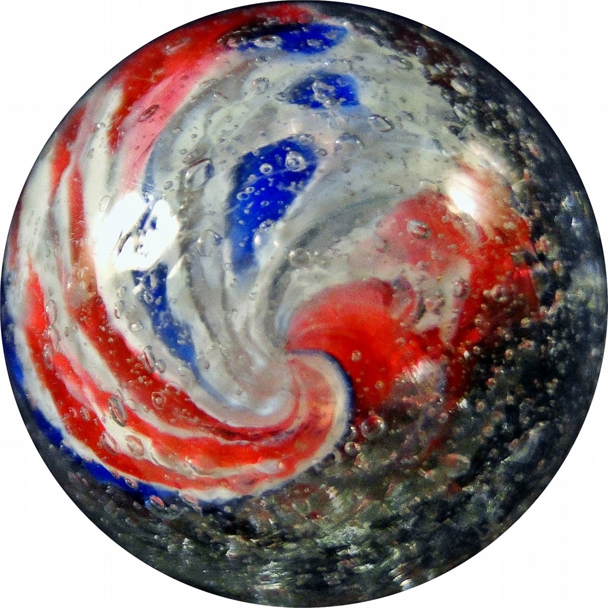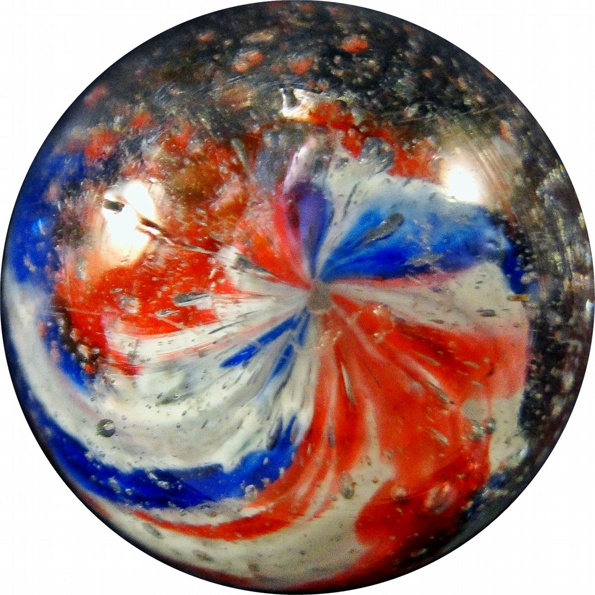 Lot 26. END OF DAY, Paneled Onionskin. Beautiful shrunken core 4-panel Onionskin. White core. Two pink panels, two blue panels. Shrunken on one side. Excellent surface. Germany, circa 1870-1920. 27/32". Mint(9.9). Estimate: $125-$250