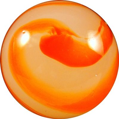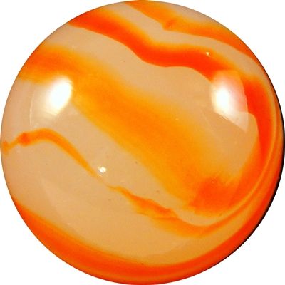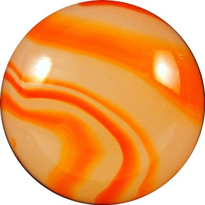 Lot 26. AKRO AGATE COMPANY, Corkscrew. Shooter size. Three spirals of translucent light orange on translucent white base. One sparkle. Clarksburg WV, circa 1927-1935. 3/4". Near Mint(+) (8.9).