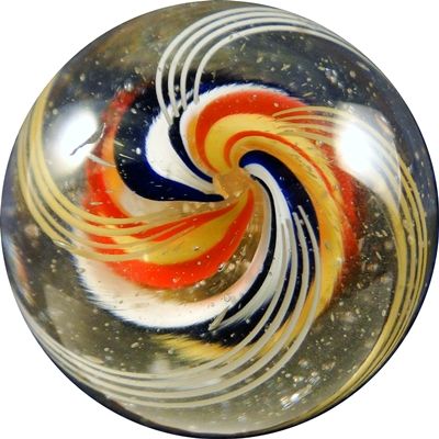 Marbles: Lot 28. Swirl. Divided Core. 1-3/8". Polished.