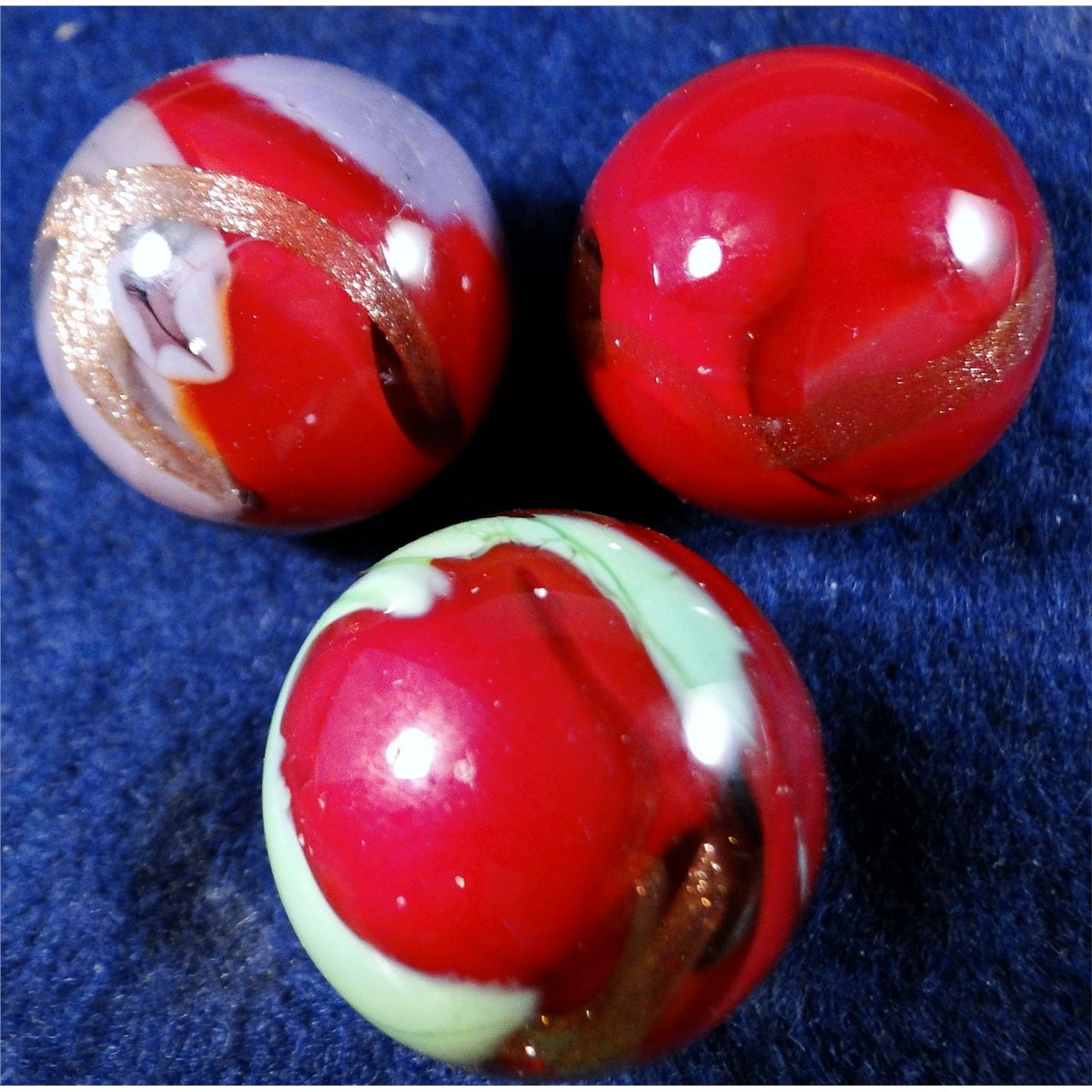 CONTEMPORARY HANDMADE. Lot of three marbles. Swirl with lutz. Unsigned, maker unknown. 31/32". Mint (9.9).