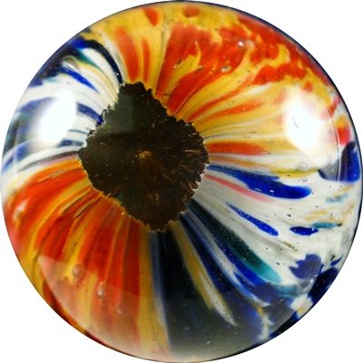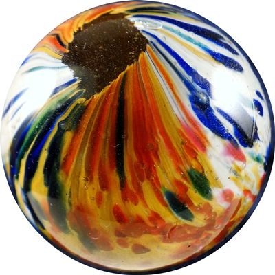 Lot 30. END OF DAY, Paneled Onionskin. Four-Panel Onionskin. Four panels. Left hand twist. Heavily polished. Germany, circa 1860-1920. 1-13/16". Polished. Provenance: This marble was recovered from an unnamed Long Island shipwreck and is accompanied by a Certificate of Authenticity from Land of Marbles.