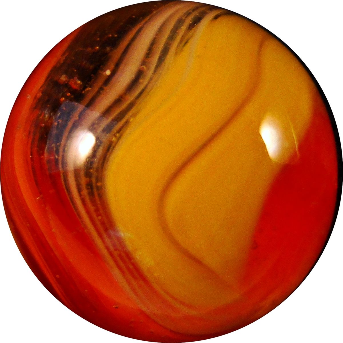Marbles: Lot 33. Akro Agate. Red/Yellow Popeye Corkscrew. 21/32". Mint 9.7.