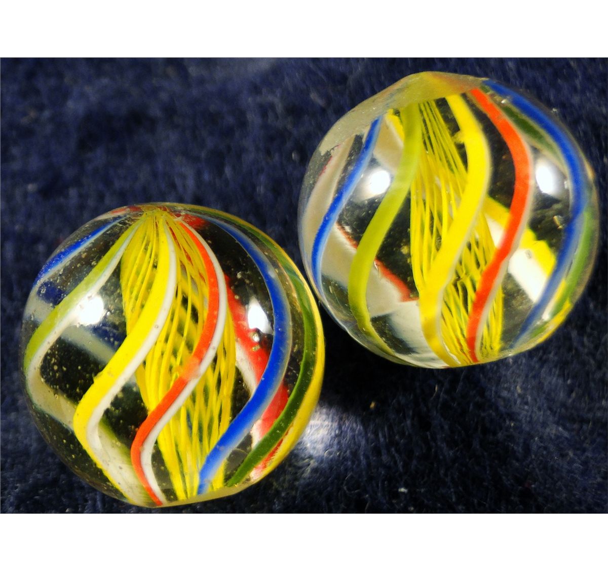 Marbles: Lot 36. 2 Swirls. Latticinio Core. Matched Pair. 11/16". Mint 9.5.