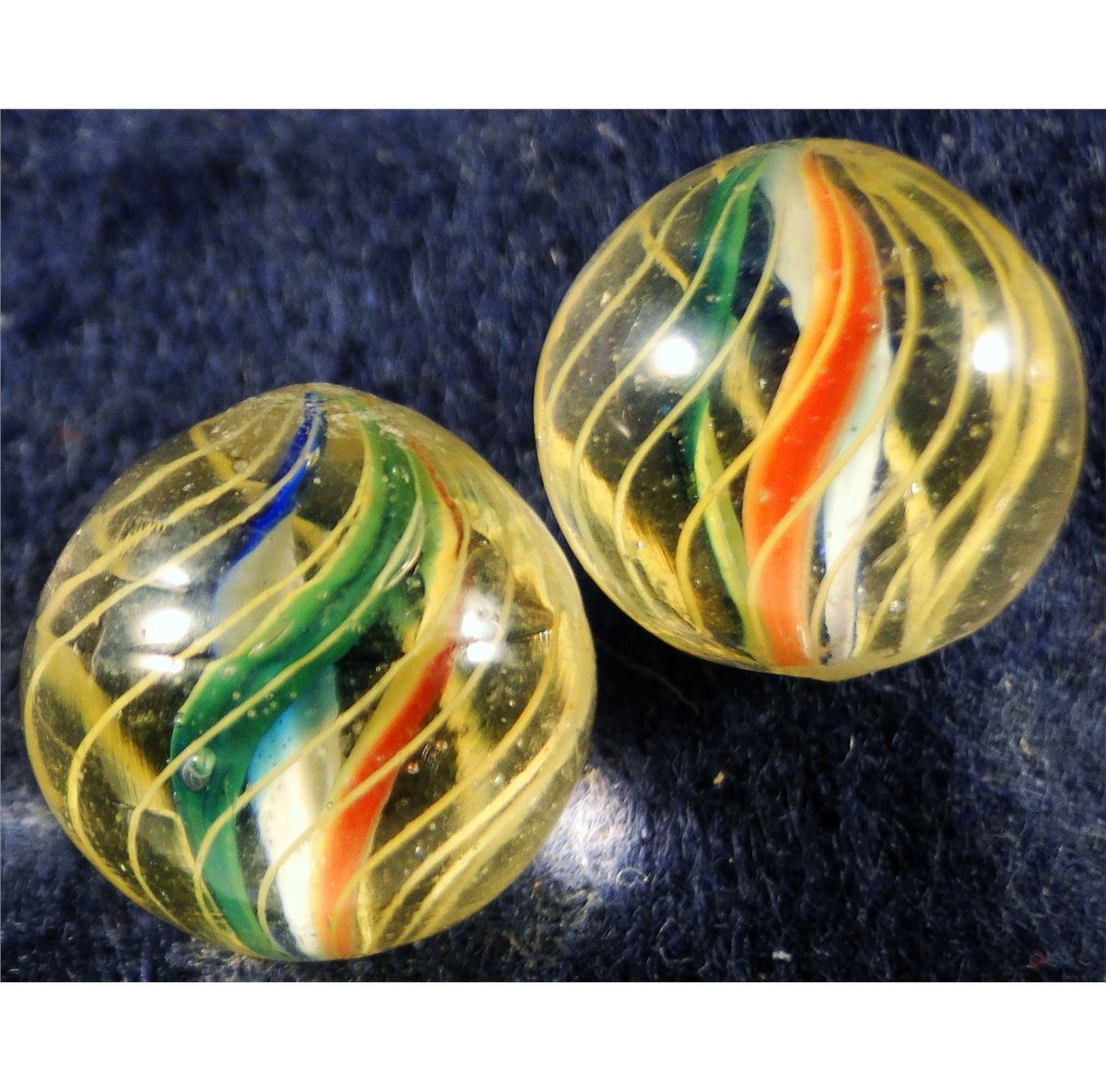 Marbles: Lot 37. 2 Swirls. Divided Core. Matched Pair. 5/8". Mint 9.7.