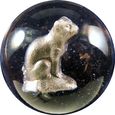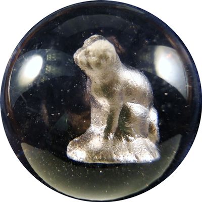 Marbles: Lot 37. Sulphide. Seated Cat. 1-13/16". Mint- 9.1.