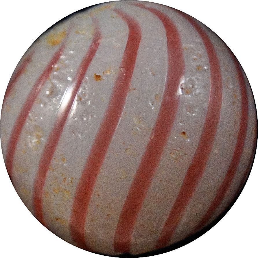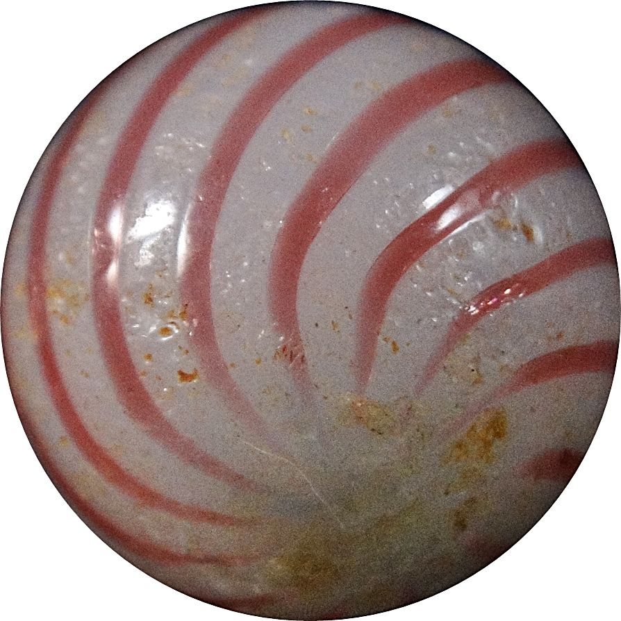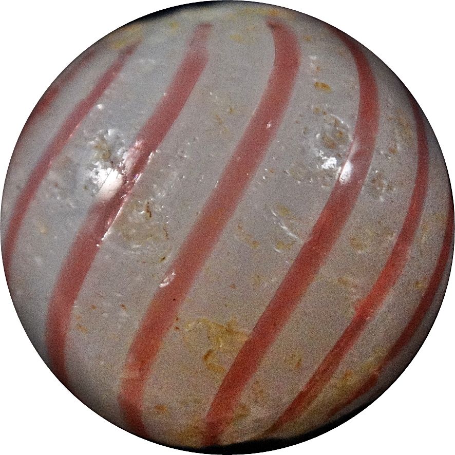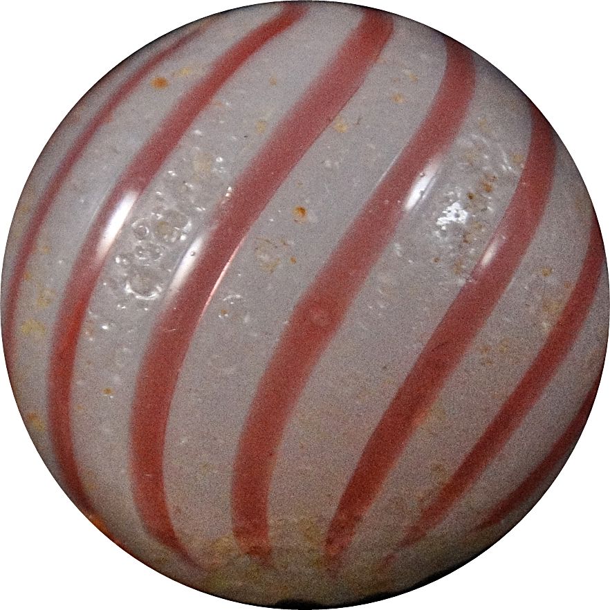 OTHER HANDMADE, Clambroth. Shooter Clambroth. Semi-opaque white base. Thirteen pink strands. Tiny subsurface moons, tiny chips and pits. Germany, circa 1870-1920. 25/32". Near Mint(-) (8.1). Provenance: ex-collection Joe Rocco. Estimate: $75-$150