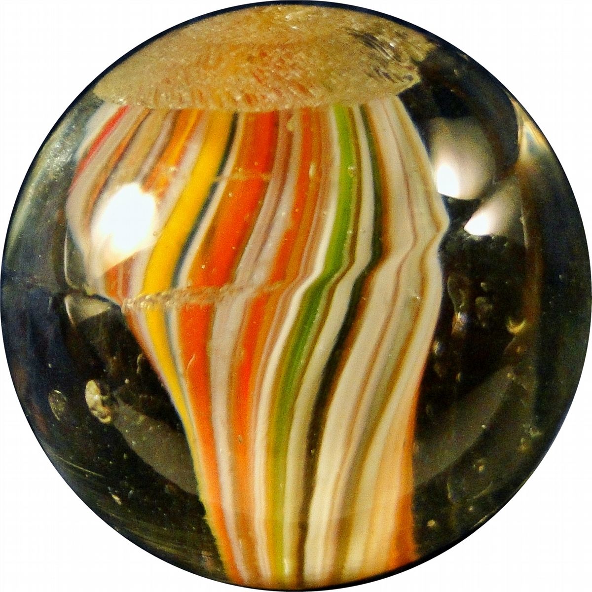 Lot 39. SWIRL, Joseph Coat. Rare cased Joseph Coat Swirl (or naked Joseph Coat). Beautifully colored core. No outer layer. One very tiny manufacturing sparkle. Germany, circa 1870-1920. 13/16". Mint(-) (9.2). Estimate: $225-$450