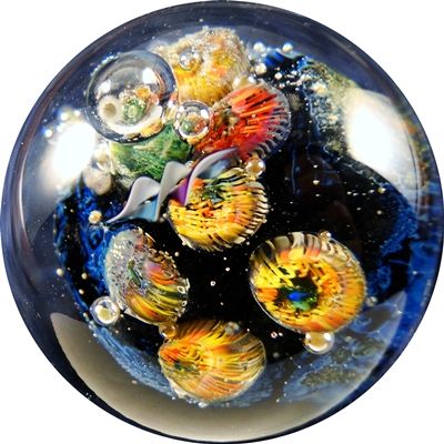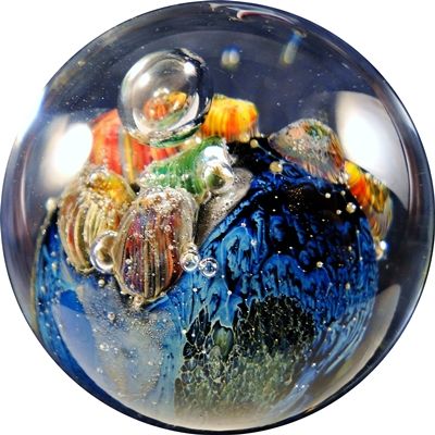 Lot 39. CONTEMPORARY HANDMADE, Josh Simpson. Inhabited Planet. Beautiful. Signed "JS00". 1-13/16". Mint (9.9).