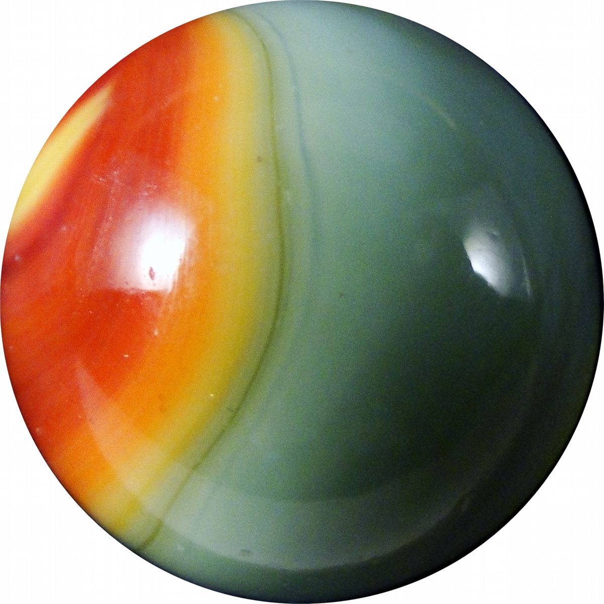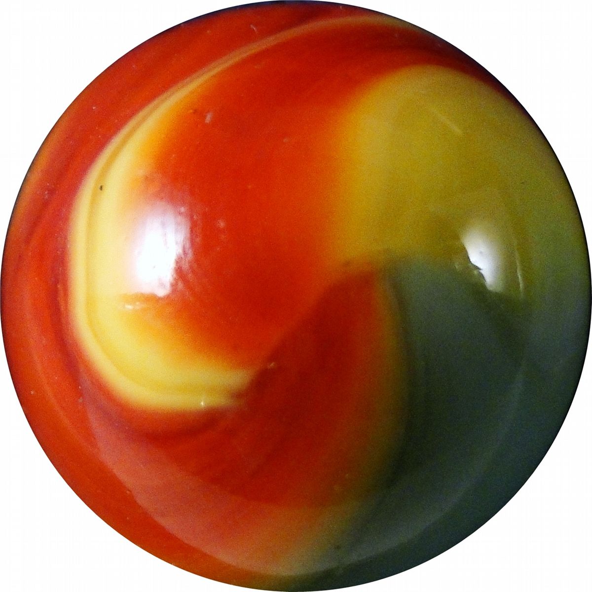 AKRO AGATE COMPANY, Corkscrew. Nice corkscrew. Opaque very light green, opaque yellow, translucent red. Pretty. Clarksburg WV, circa 1925-1935. 11/16". Mint (9.3).
