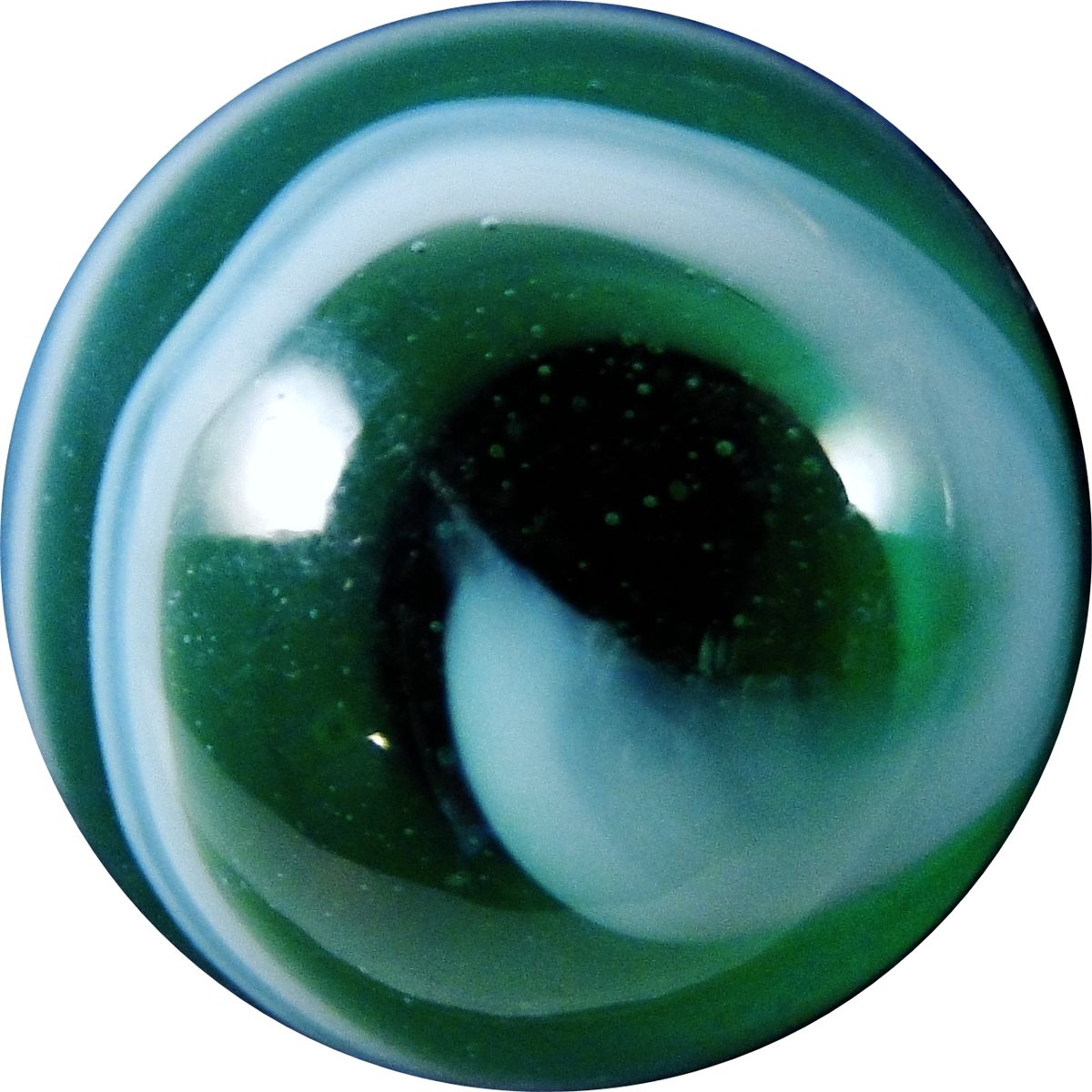AKRO AGATE COMPANY, Corkscrew. Triple-twist Ribbon Corkscrew. Semi-opaque white ribbon in transparent green. Clarksburg WV, circa 1925-1935. 19/32". Mint (9.8).
