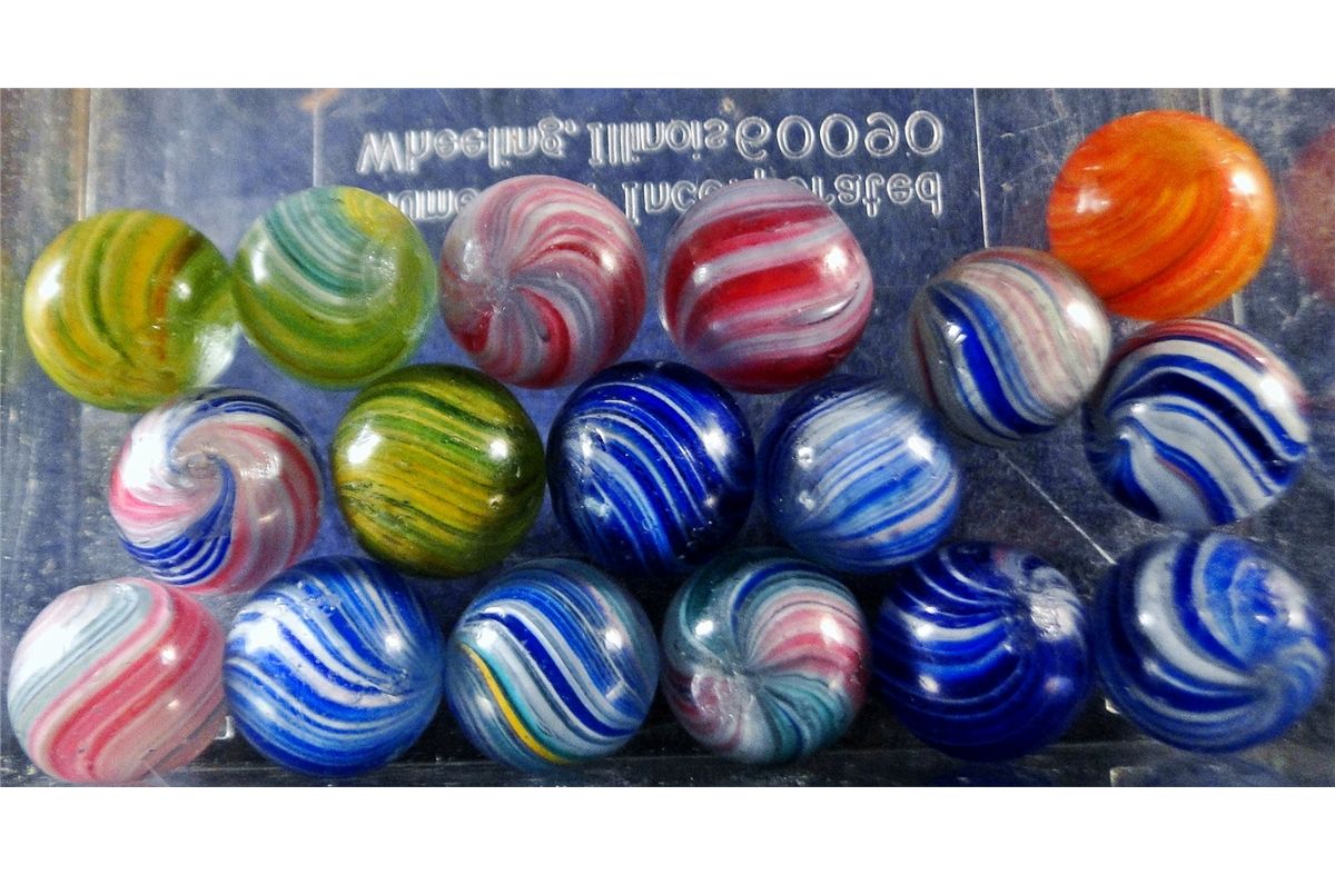 Marbles: Lot 5. End of Day. Onionskin. 17 Marbles.