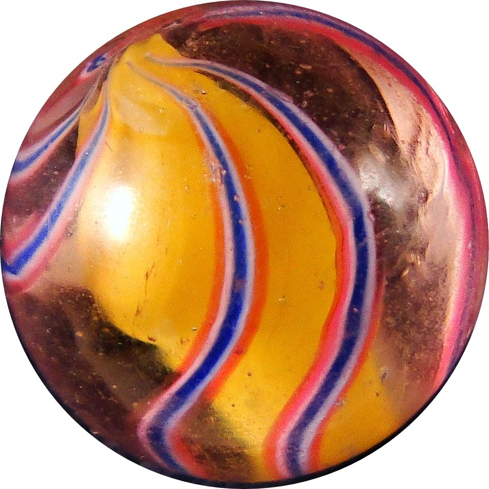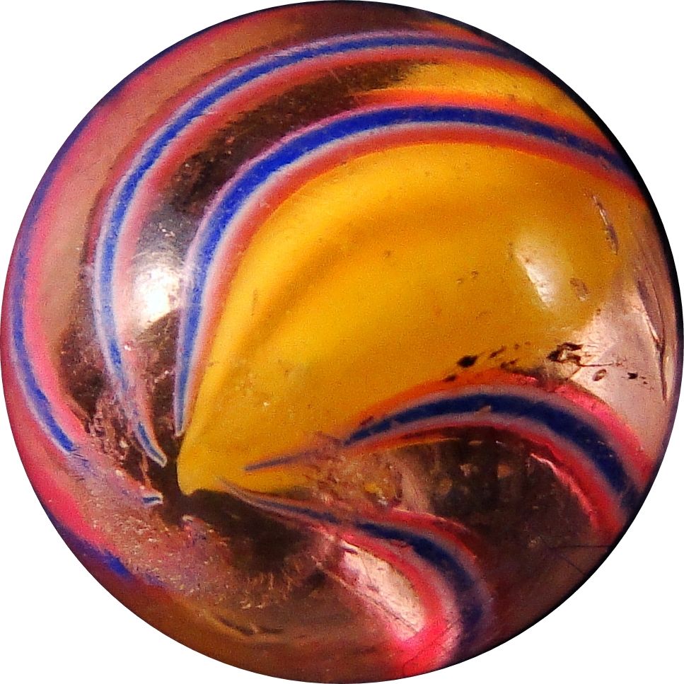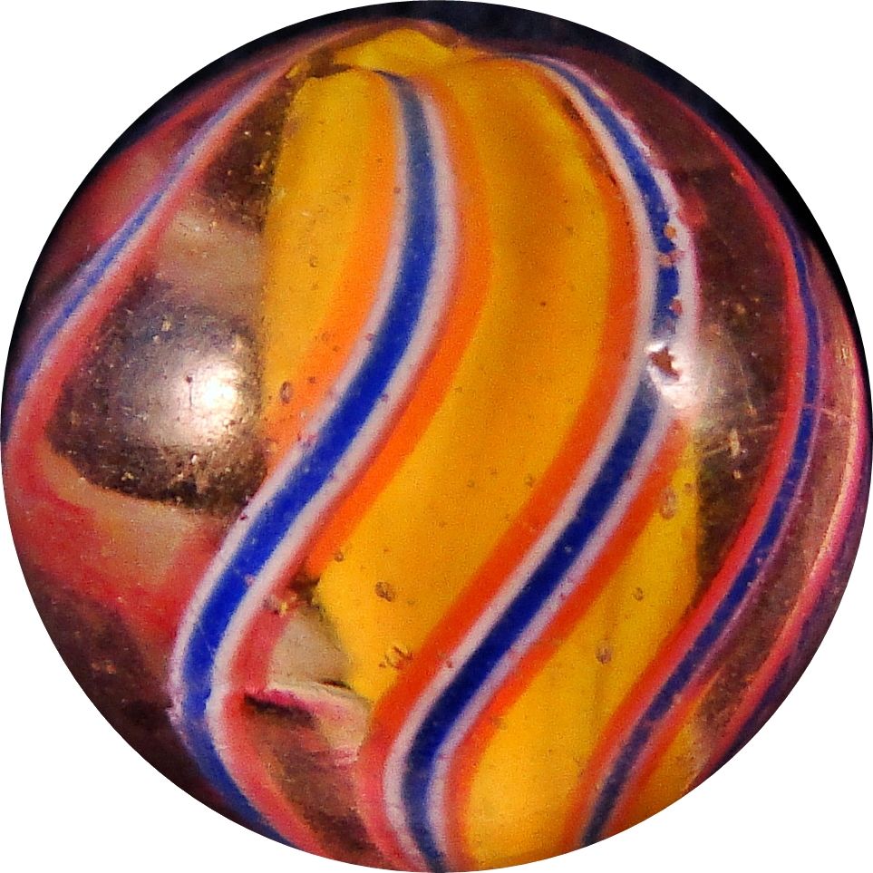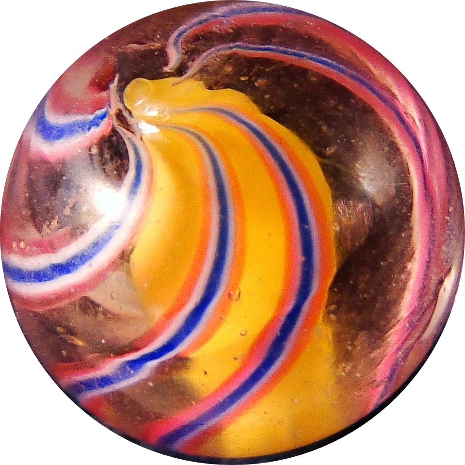 Very pretty Solid Core Swirl. "English" color. A couple of tiny mlet pits and a airhole. Germany, circa 1870-1920. 9/16". Mint- (9.0).