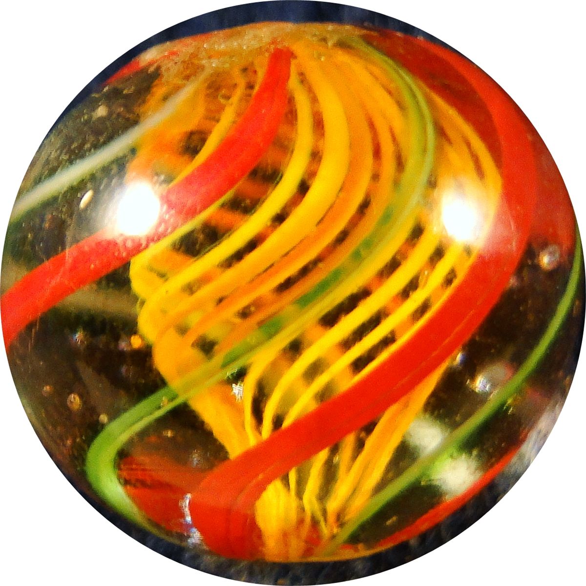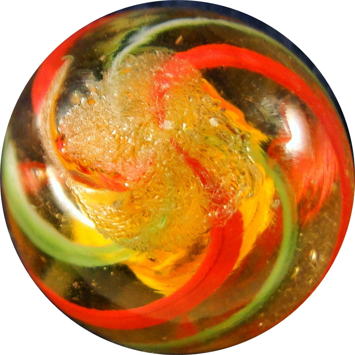 SWIRL, Latticinio Core. Yellow Latticinio Core. Beauty. Germany, circa 1870-1920. 11/16". Mint (9.8).