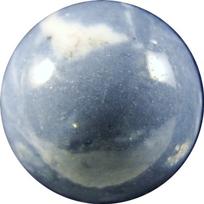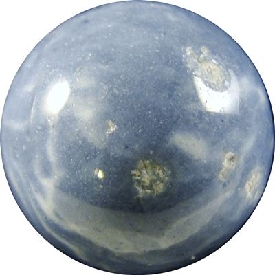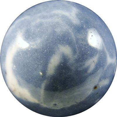 Lot 51. NON-GLASS HANDMADE, Crockery. Lined Crockery. Glazed. Blue base with white lines. In great shape. Germany, circa 1850-1920. 3/4". Mint (9.8).Provenance: This marble was recovered from an unnamed Long Island shipwreck and is accompanied by a Certificate of Authenticity from Land of Marbles.