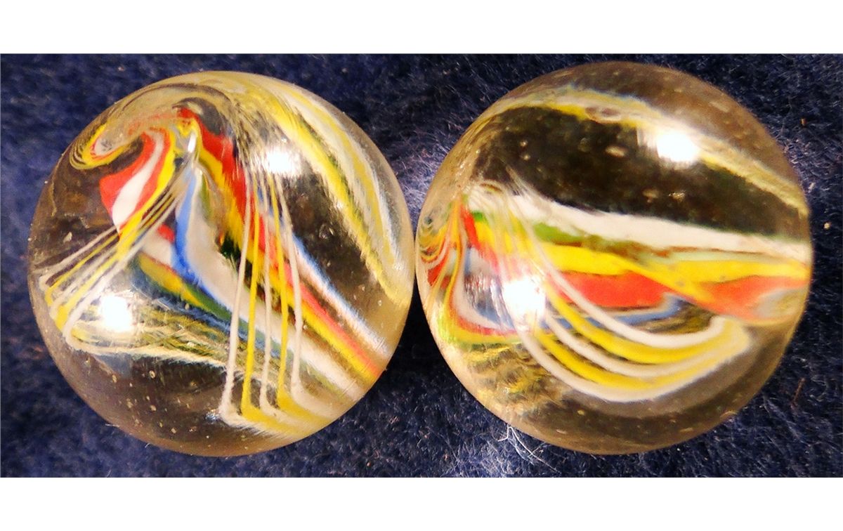 Lot of two marbles. Matched pair of Divided Core Swirls. Germany, circa 1870-1920. 13/16". Mint (9.7).