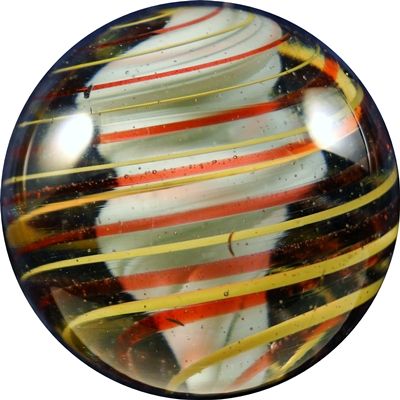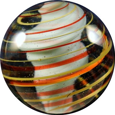 Lot 64. SWIRL, Solid Core. Interesting Solid Core Swirl. Core is fat and opaque white, no color on it. Slightly lobed. Outer layer is eight strands. Double twist. Polished. From a shipwreck. Germany, circa 1850-1920. 1-9/16". Polished. Provenance: This marble was recovered from an unnamed Long Island shipwreck and is accompanied by a Certificate of Authenticity from Land of Marbles.