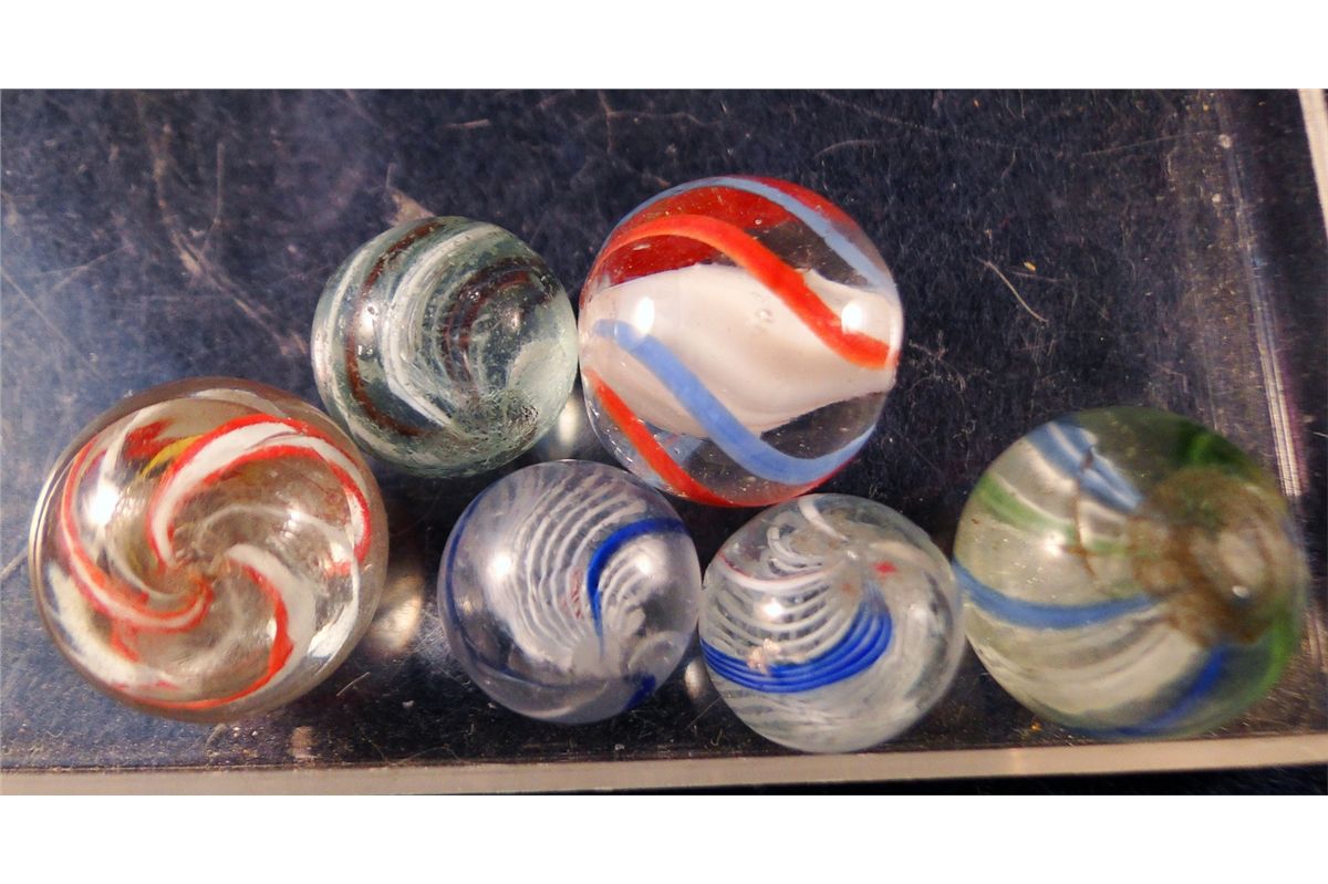 Marbles: Lot 66. Swirl. 7 Latticinio Core Swirls. 17/32" to 11/16". Mint- to NM.