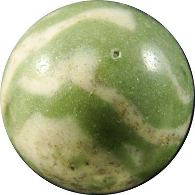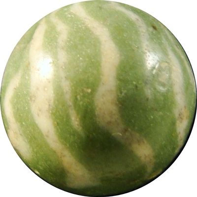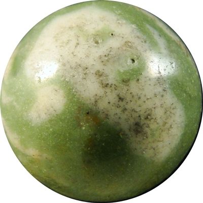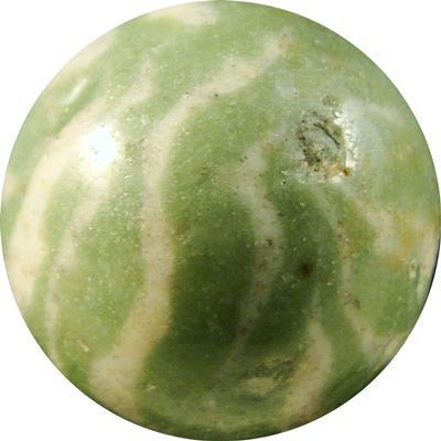 Lot 69. NON-GLASS HANDMADE, Crockery. Lined Crockery. Green and white swirl. Glazed. Beautiful. From a shipwreck. Germany, circa 1850-1920. 3/4". Mint(-) (9.1).Provenance: This marble was recovered from an unnamed Long Island shipwreck and is accompanied by a Certificate of Authenticity from Land of Marbles.