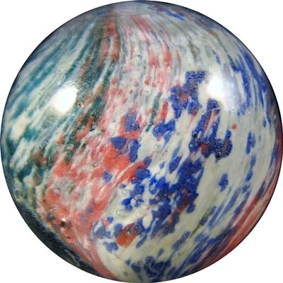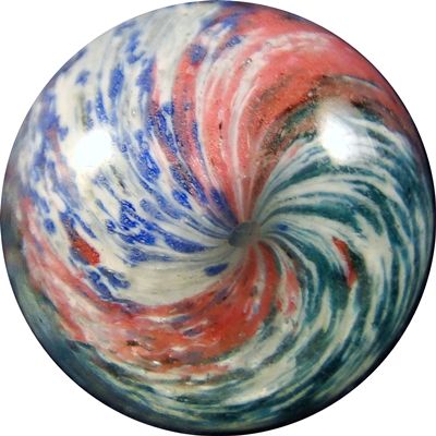 Lot 74. END OF DAY, Paneled Onionskin. Four-Panel Onionskin. Stunning marble. Great color, great design. In superb condition. One melt pit, a little scratching (under a 10x loupe, not to the naked eye). Germany, circa 1870-1920. 27/32". Mint (9.6).