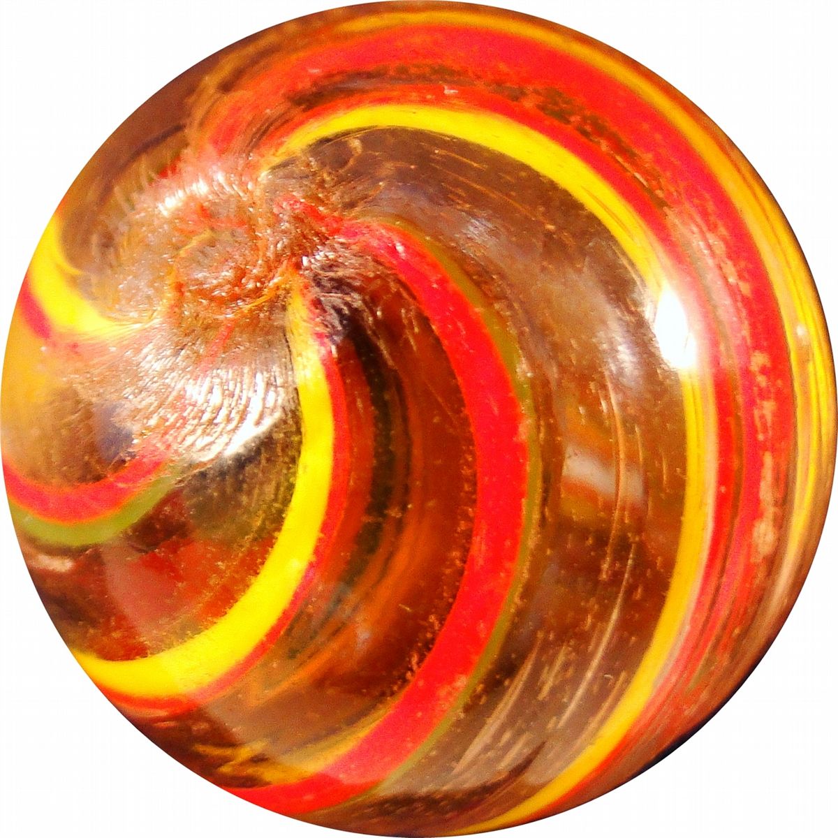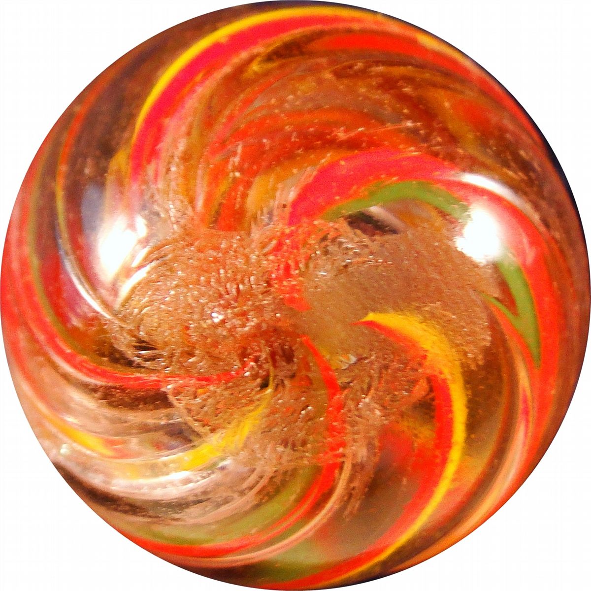 Interesting Solid Core Swirl. Oddly colored core. Nice outer layer. One blown air hole, some cold roll lines. Beauty. Germany, circa 1870-1920. 25/32". Mint(-) (9.1).