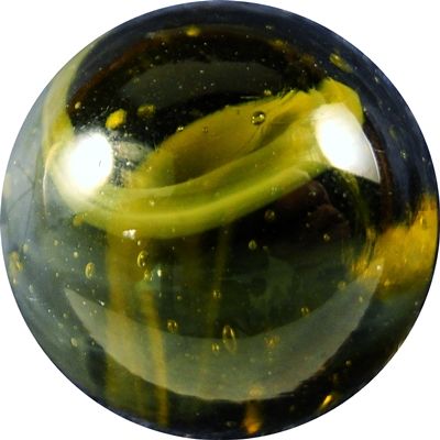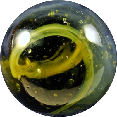 Lot 75. TRANSITIONAL, Melted Pontil. Super example of a Navarre Glass Marble and Specialty Company Melted Pontil. Nice "9" and tail design with a very nice melted pontil with carboning. In super condition. Akron OH, circa 1890-1900. 13/16". Mint (9.9).
