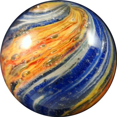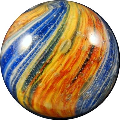 Lot 80. END OF DAY, Paneled Onionskin. Four-Panel Onionskin. Stunning marble. Great color, great design. One melt spot, one tiny flake near the top. Germany, circa 1870-1920. 27/32". Near Mint(+) (8.9).