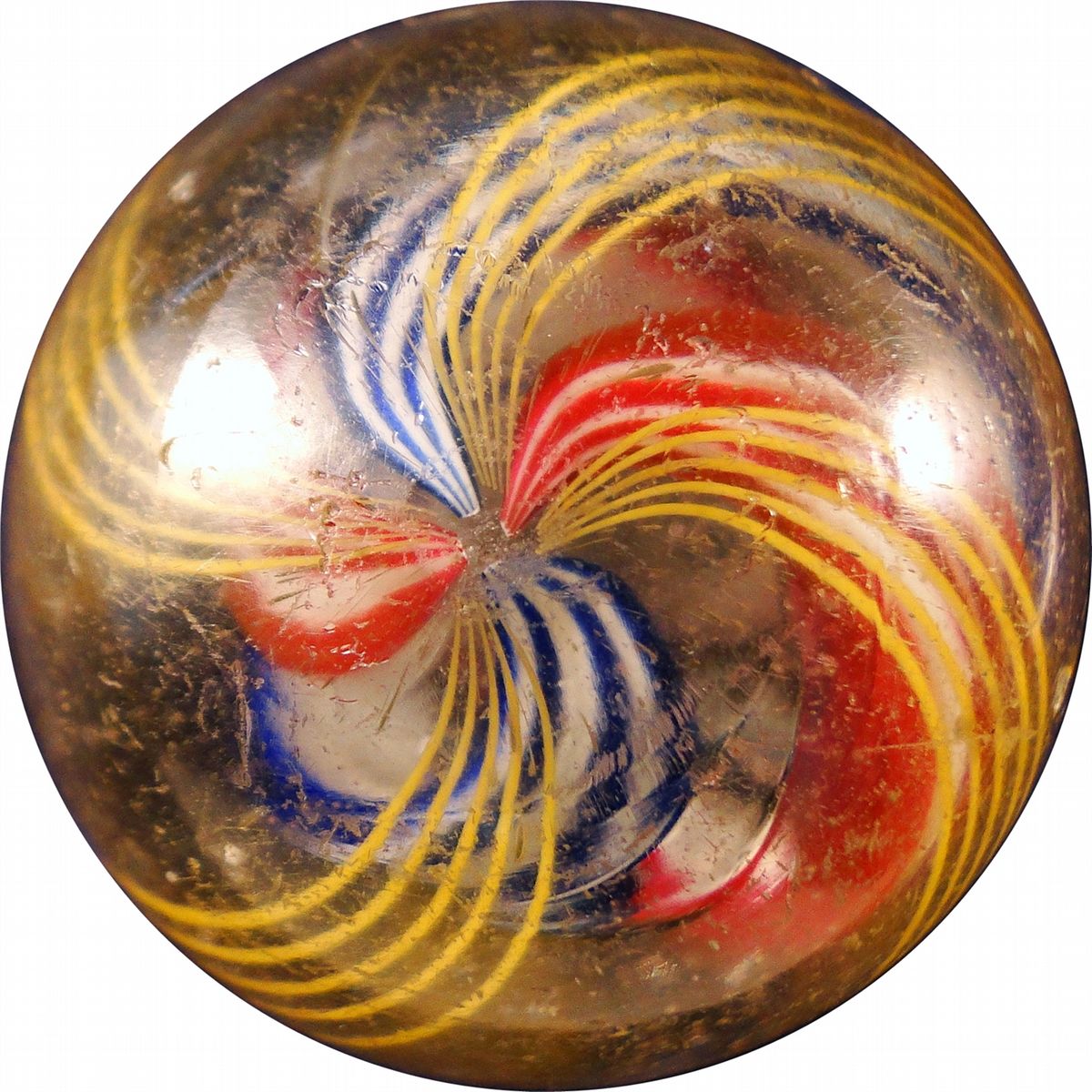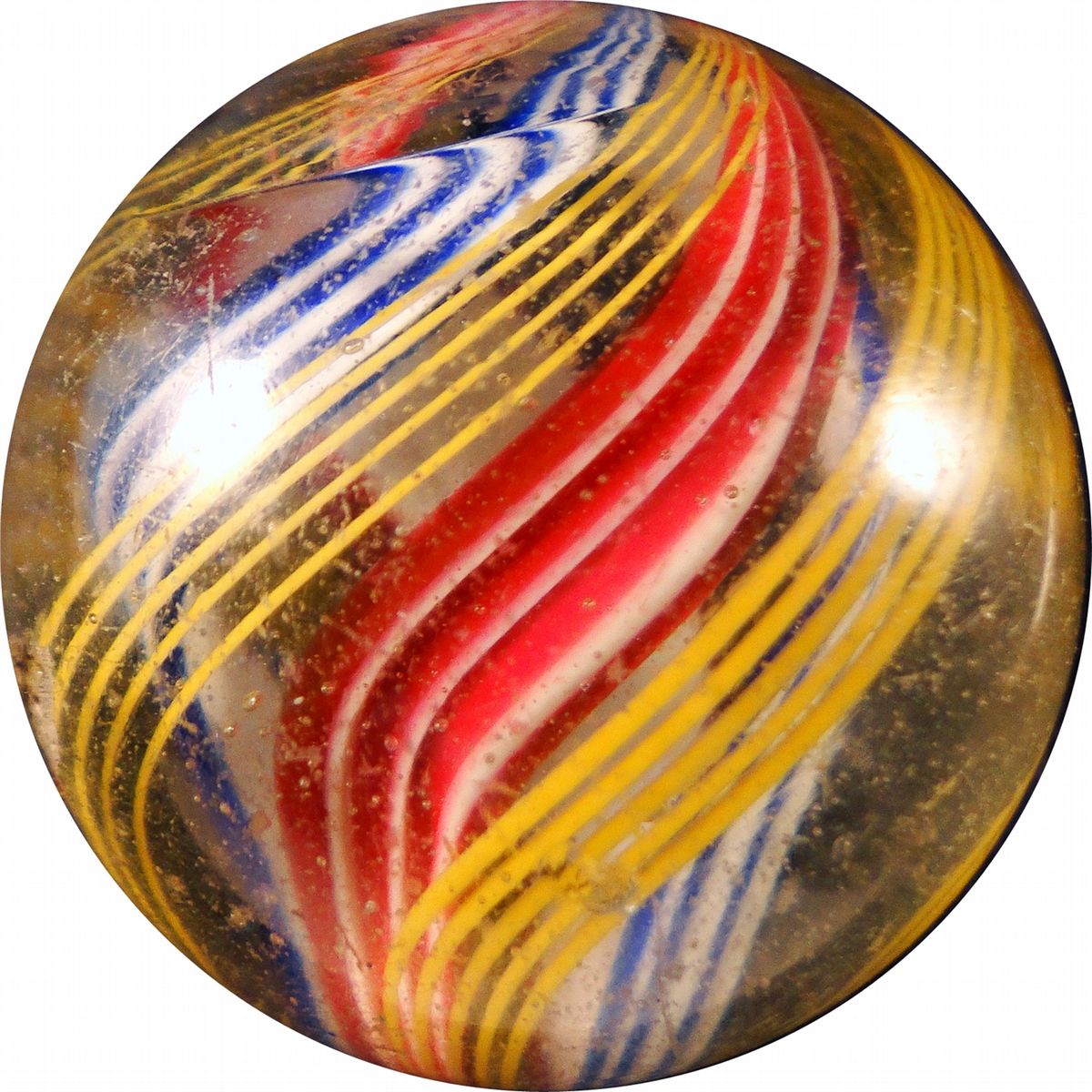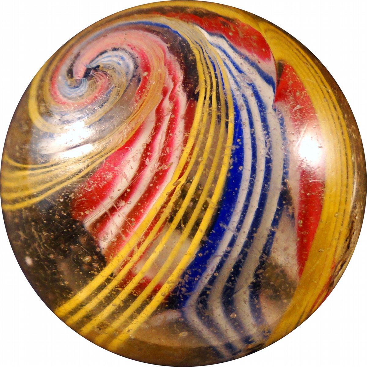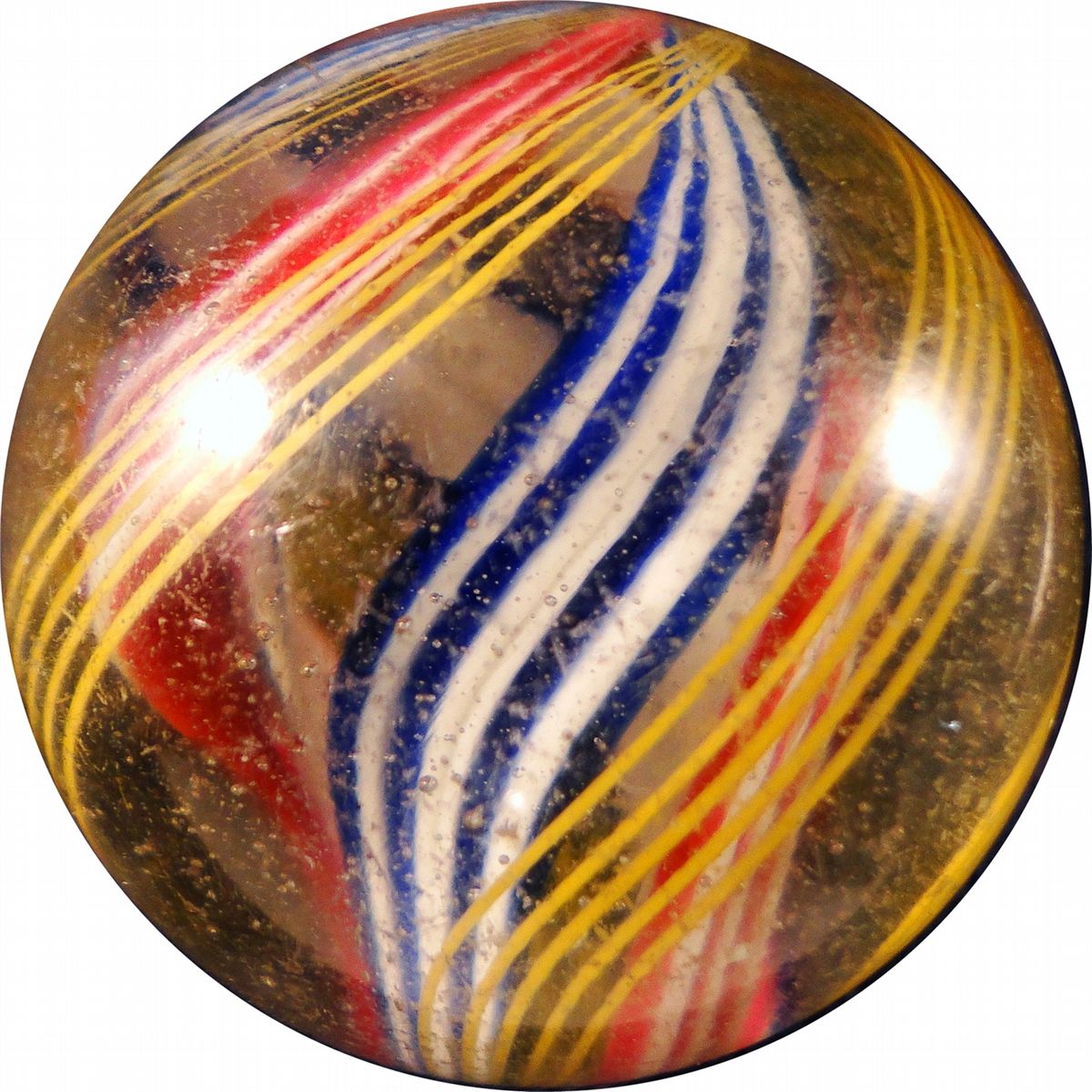 Classic example of a four-band Divided Core Swirl. Two melt spots, one tiny flake, a number of sparkles, some overall wear. Germany, circa 1870-1920. 1-13/16". Near Mint(+) (8.7).