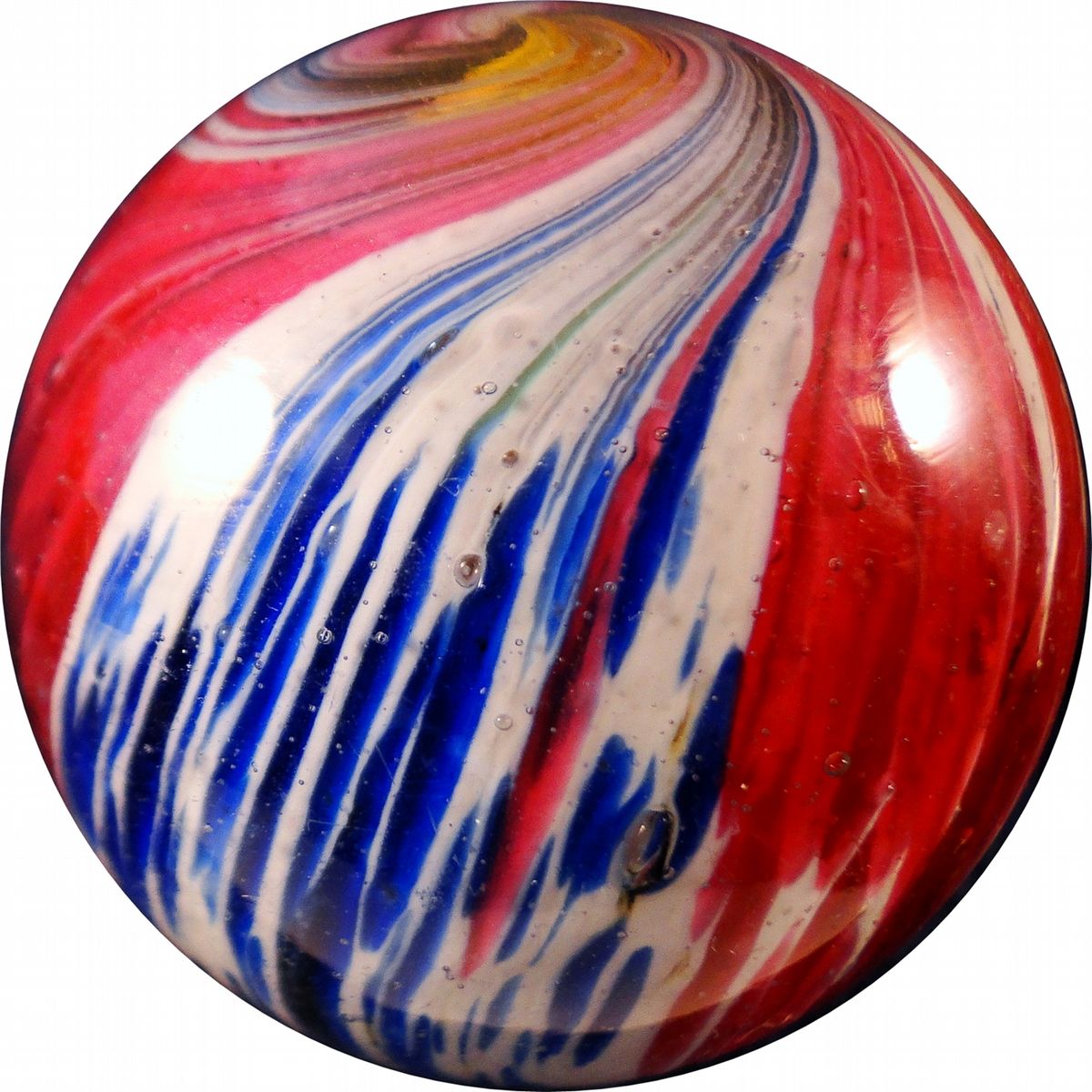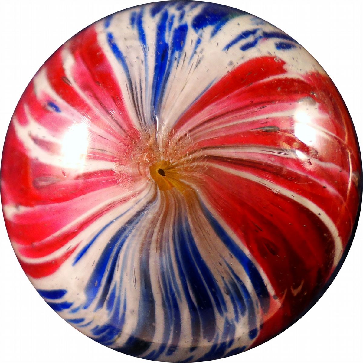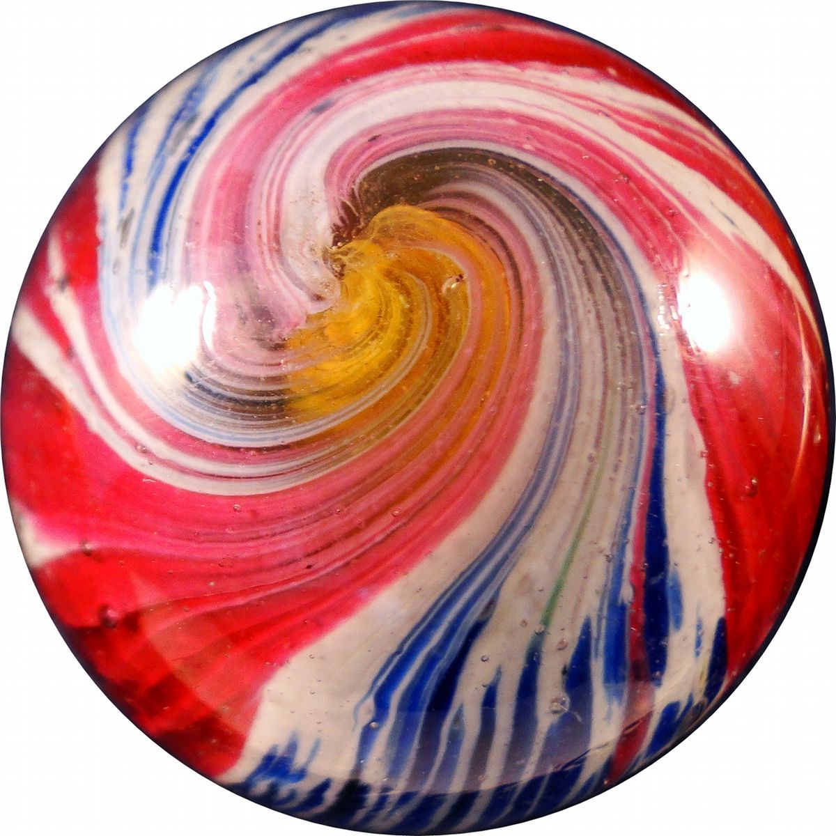 Exceptional 4-Panel Onionskin. Has a yellow inner core. Subsurface layer is white with two blue panels and two pink panels. No damage to the surface. No wear. Beautiful! Germany, circa 1870-1920. 1-13/16". Mint (9.8).