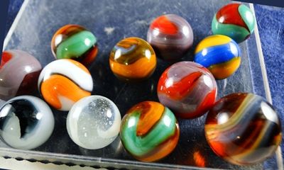 Marbles: Lot 9. Akro Agate Company. 12 Corkscrews. Almost all Mint.