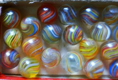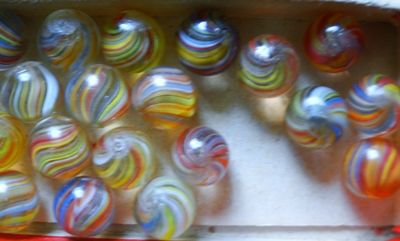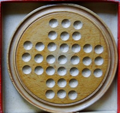 Lot 91. MISCELLANEOUS, Game. Solitaire boxed game with board and Joseph Coat Swirls. Gorgeous, complete and rare. Fruitwood board, 5" diameter. Thirty two Joseph Coat Swirls. All about 17/32". All Mint. Original box. Instructions and solution in the box top, in Dtch. J.W. Spear, Nuremberg. Meant for export to Holland or its colonies. Box is 7-1/4" x 5-1/4". Everything in great shape. Stunning Antique set.