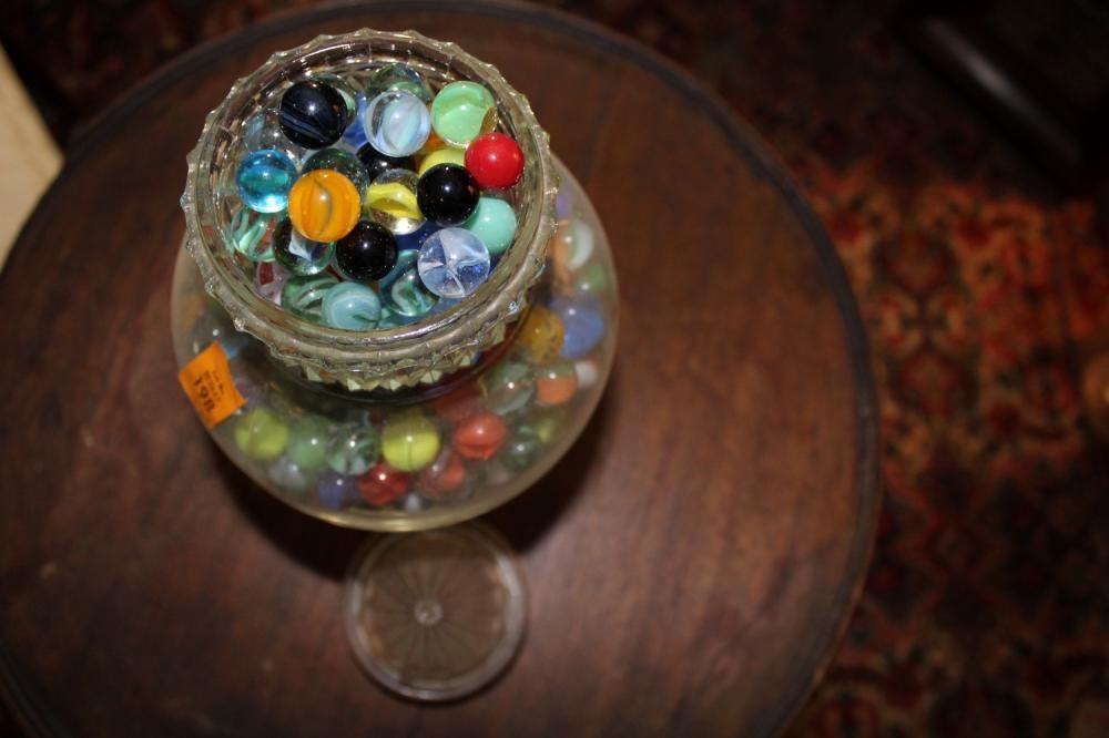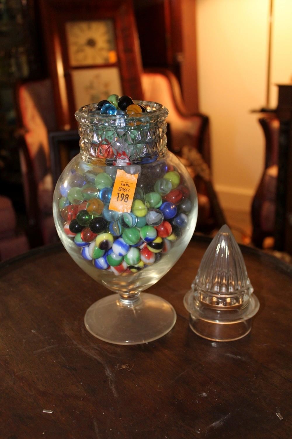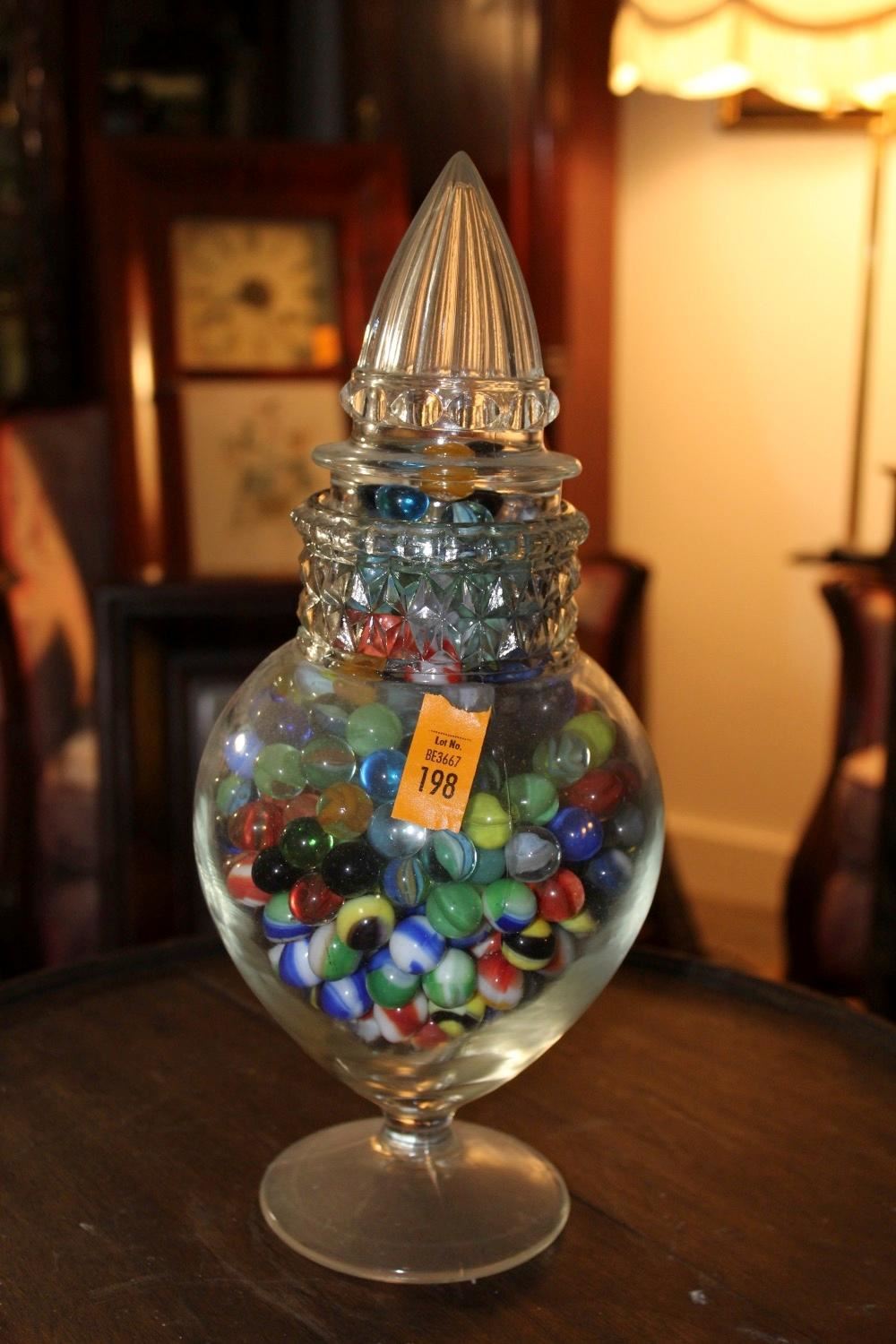 Marbles Assortment in crystal Country Store Display. Approx. 14 inches tall x 6 inches wide.