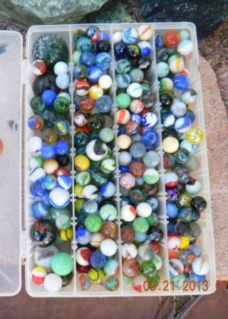 Collection of marbles, some are antique. More than 250 marbles, approximately 1/2 by 2 inches . Shipping $18.00. Good condition