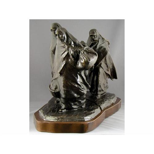 [Canadian RCA 1869-1937] FEMMES DE CAUGHNAWAGA; 1924 Bronze sculpture, cast in two sections, on a wooden base 17 x 17.25 x 23.75 in.