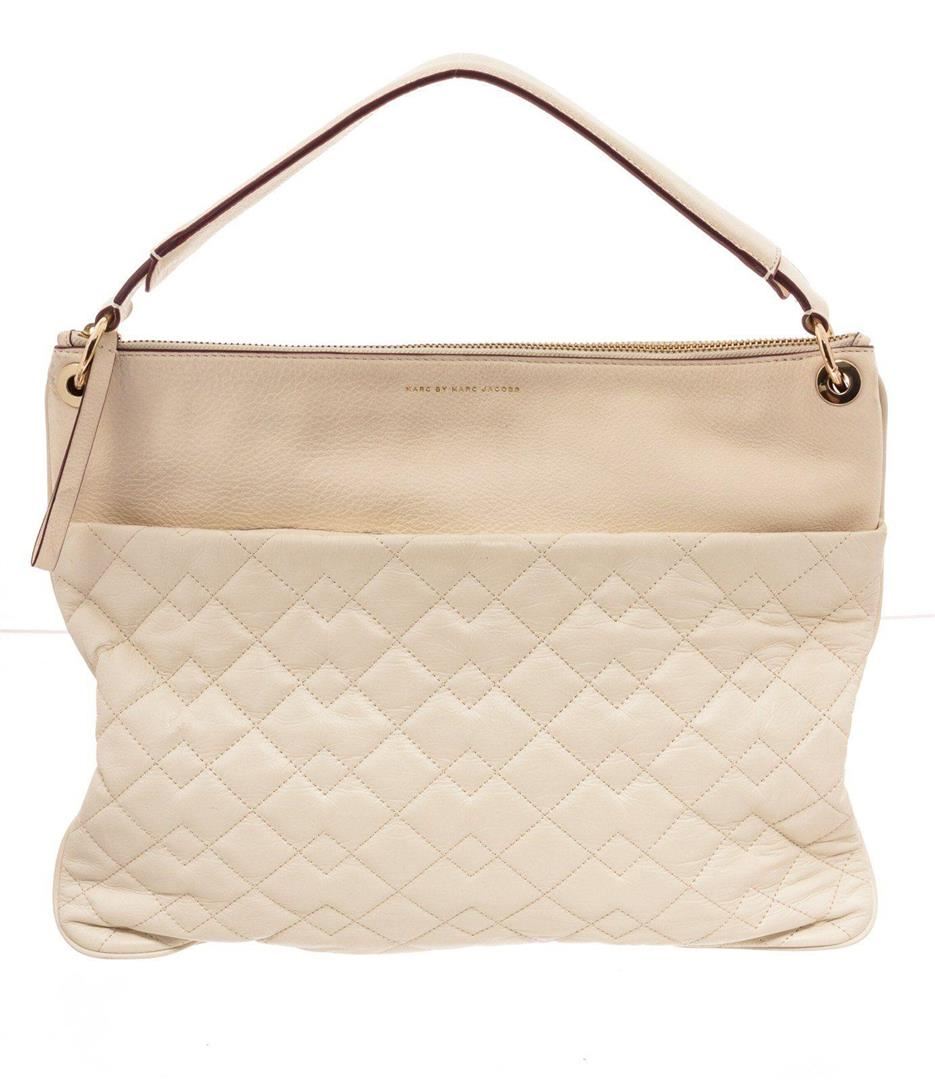 Marc By Marc Jacobs Cream Tread Lightly Cross Body Bag with gold-tone hardware,, interior zip pockets, top handle Handle, adjustable shoulder strap, and zipper closure. Measurements: Length: 11.5 in / 29 cm Width: 1 in / 3 cm 8 in / 20 cmCONDITION: