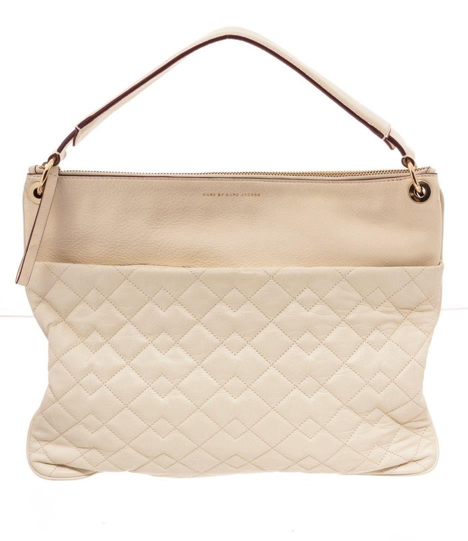Marc By Marc Jacobs Cream Tread Lightly Cross Body Bag with gold-tone hardware,, interior zip pockets, top handle Handle, adjustable shoulder strap, and zipper closure. Measurements: Length: 11.5 in / 29 cm Width: 1 in / 3 cm 8 in / 20 cmCONDITION: Pre-Owned Good overall, please see photographs for detail.