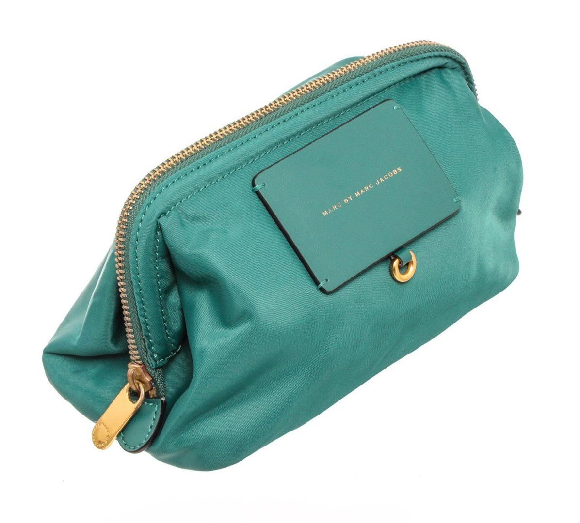 Marc By Marc Jacobs green nylon Preppy cosmetic pouch with gold-tone hardware, logo placard at front face, black nylon interior lining, one interior pocket and overall zip closure at top. Measurements: Length: 8 in / 20 cm Width: 4.6 in / 12 cm 5.25 in / 13 cm Condition: Pre-Owned Good overall, please see photographs for detail.