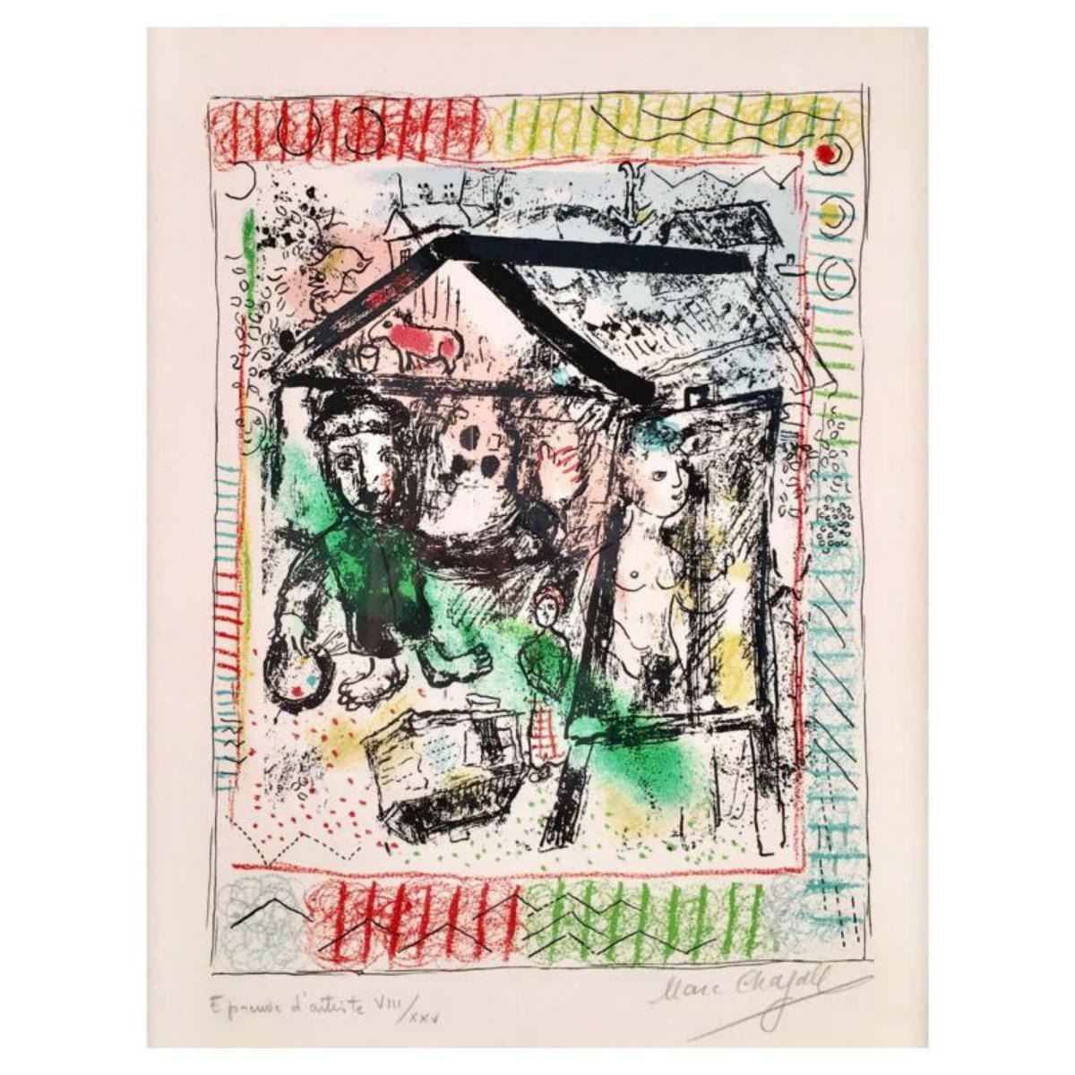 Marc Chagall (1887-1985), "The Artist at The Village II" Framed Hand Signed Limited Edition Original