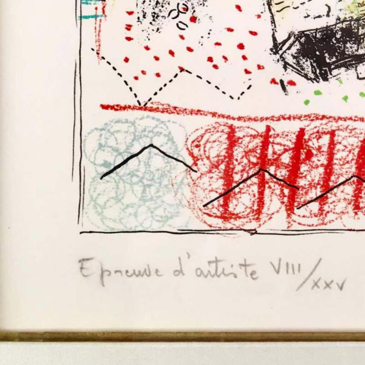 "The Artist at The Village II" is a limited edition original lithograph on arches paper by Marc Chagall (1887-1985), numbered and hand signed by the artist. This piece comes framed. Includes Letter of Authenticity. Measures approx. 20" x 25.5" (frame), 11" x 15.5" (image). Reference #: 250929