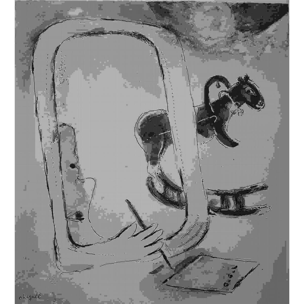 Marc Chagall 1952 Antique First Edition Lithograph - Published 1952 in Eretz Israel for the 1st Edition of the Rare Hebrew-Yiddish-Russian-Jewish Poetry Book "Siberia" by Abraham Sutzkever Illustrated by Marc Chagall - Image Size Appx 8.5" x 9.5" - Professionally Framed & Matted - Signed in The Plate