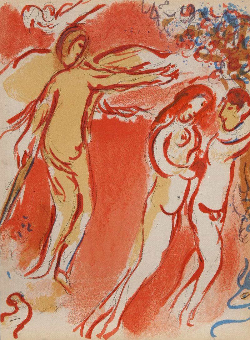 Marc Chagall, Adam and Eve banished from the Garden of Eden, Lithograph