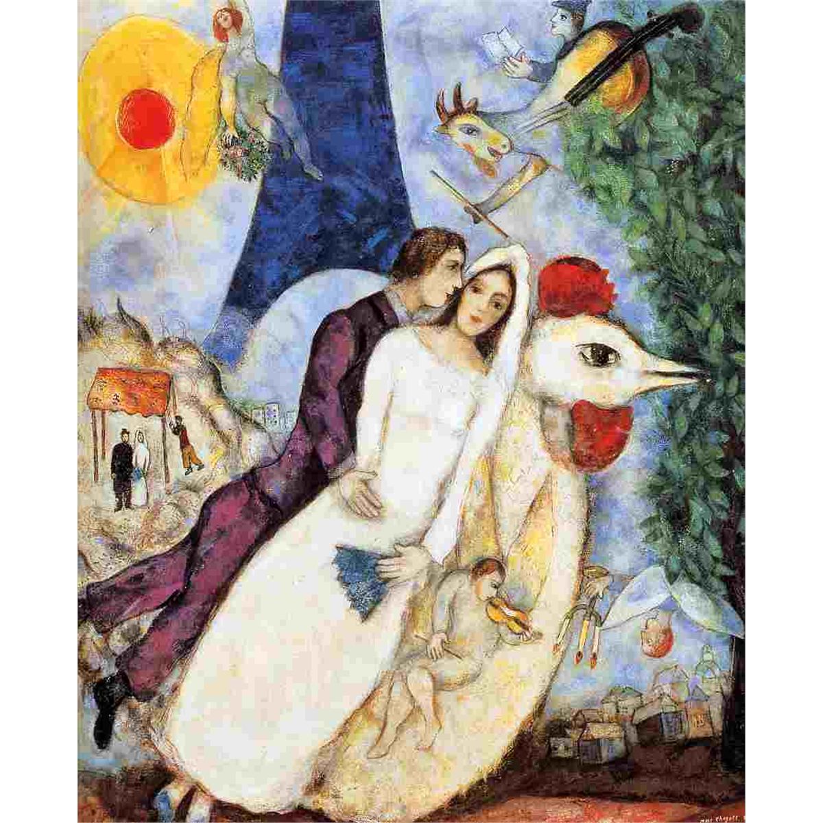 Marc Chagall "Bride & Groom Of Eiffel Tower" - Limted Edition Giclee' On Heavy Archival Wove Paper - Numbered In Pencil - Signed In The Plate - Professionally Framed And Matted - Mint - Comes With COA - 15" X 11" Appx Page Size