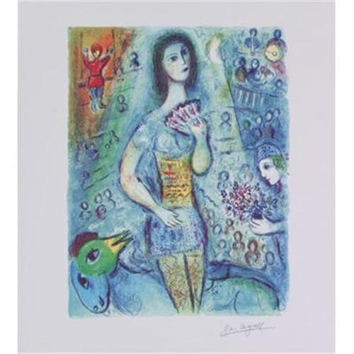 Notes:Gicle reproduction of Marc Chagall's Bride with Fan. The print is embellished with a facsimile signature of Marc Chagall and measures 12 x 11 inches.