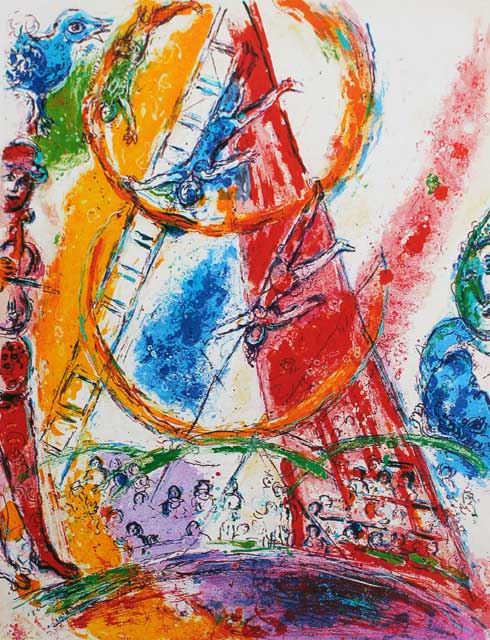 Artist: Marc Chagall - Title: Circus III - Medium: Fine Art Giclee on Paper - Signature: Facsimile Signed - Limited Edition: 375 - Image Size: Approximately 18.75 inches x 14.5 inches - Paper Size: Approximately 23 « inches x 17.25 inches - Framed: Unframed - Biography: One of the greatest names in the history of art is Marc Chagall. Born in old Czarist Russia in 1887, he lived to the ripe old age of 98. His passing came in his adopted home in Paris. Chagall's story begins with the Primitivist Movement of the turn of the century. He moved to Paris in 1910, where he studied the masters Cezanne, Van Gogh and Paul Gauguin. Drawn to the excitement of the Russian Revolution, he returned to Russia in 1914 and founded the Constructionist School in 1917. - After two years of intense controversy and artistic conflict, Chagall returned to a dreamy fairy tale art form that is the modern forerunner of Traditional Surrealism. His grandest showing is at the Hermitage in St. Petersburg, Russia, the largest art museum on earth. He is displayed at the most important museums without exception. His original oils bring millions of dollars art auction. His signed and numbered graphics command tens of thousands. -