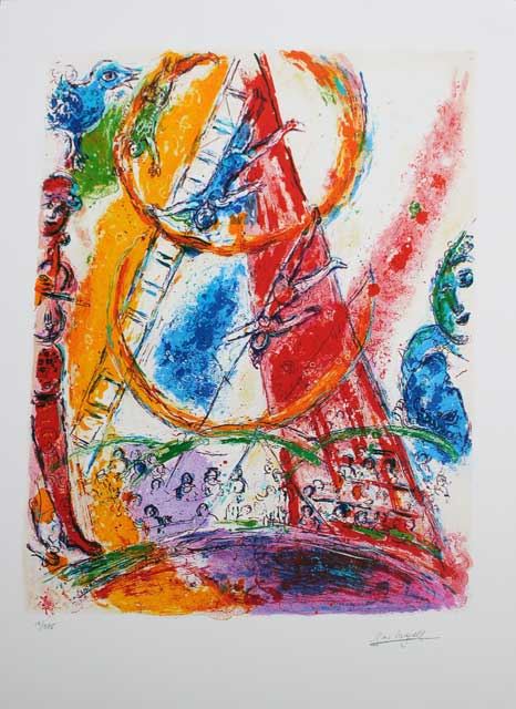 Artist: Marc Chagall - Title: Circus III - Medium: Fine Art Giclee on Paper - Signature: Facsimile Signed - Limited Edition: 375 - Image Size: Approximately 18.75 inches x 14.5 inches - Paper Size: Approximately 23 « inches x 17.25 inches - Framed: Unframed - Biography: One of the greatest names in the history of art is Marc Chagall. Born in old Czarist Russia in 1887, he lived to the ripe old age of 98. His passing came in his adopted home in Paris. Chagall's story begins with the Primitivist Movement of the turn of the century. He moved to Paris in 1910, where he studied the masters Cezanne, Van Gogh and Paul Gauguin. Drawn to the excitement of the Russian Revolution, he returned to Russia in 1914 and founded the Constructionist School in 1917. - After two years of intense controversy and artistic conflict, Chagall returned to a dreamy fairy tale art form that is the modern forerunner of Traditional Surrealism. His grandest showing is at the Hermitage in St. Petersburg, Russia, the largest art museum on earth. He is displayed at the most important museums without exception. His original oils bring millions of dollars art auction. His signed and numbered graphics command tens of thousands. -