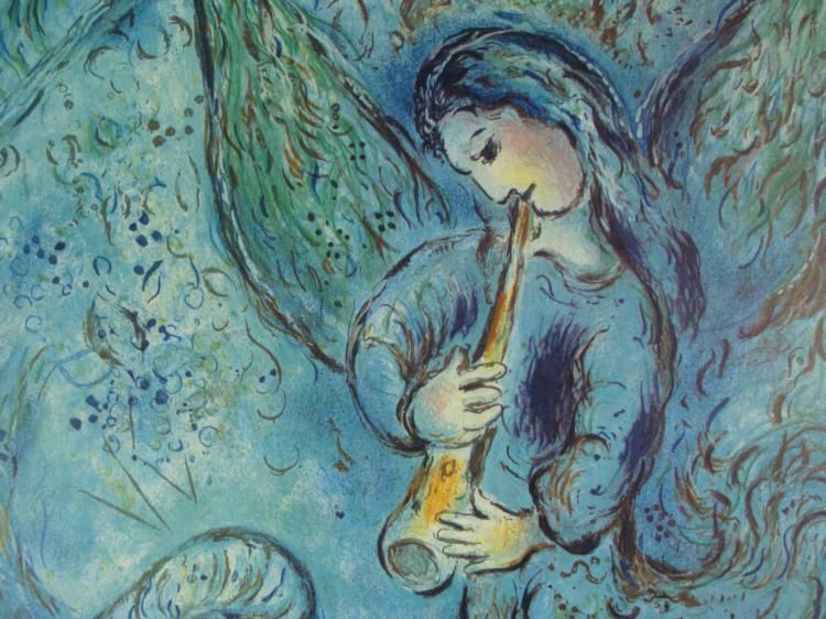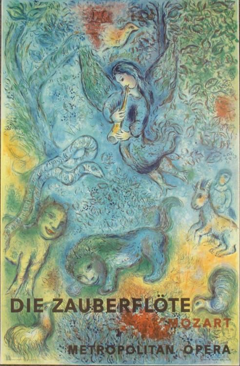 "The Magic Flute" is portrayed here with all the magic of the Mozart opera. Artist: Marc Chagall Title: Die Zauberflote * Image Size: '39 3/4 x '25 3/4 inches. Paper Size: 39 3/4 x 25 3/4 inches.