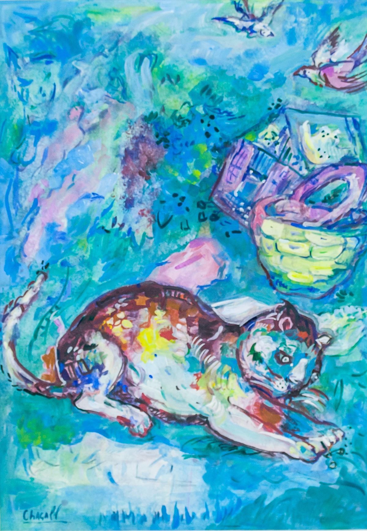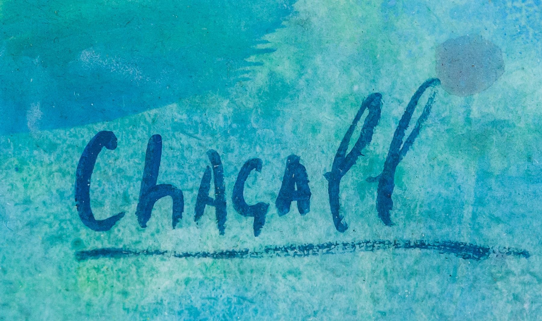 Gouache on paper, framed. Featuring a surrealist landscape scene. Signed Chagall on the lower left corner. Attributed to Marc Chagall (Russian-French, 1887-1985). 29 x 20 cm (11.4 x 7.9 inches). Frame size: 42 x 32 cm (16.5 x 12.6 inches). PROVENANCE: This lot carries limited provenance from a Southern Ontario estate