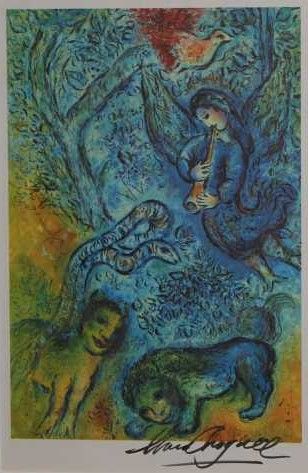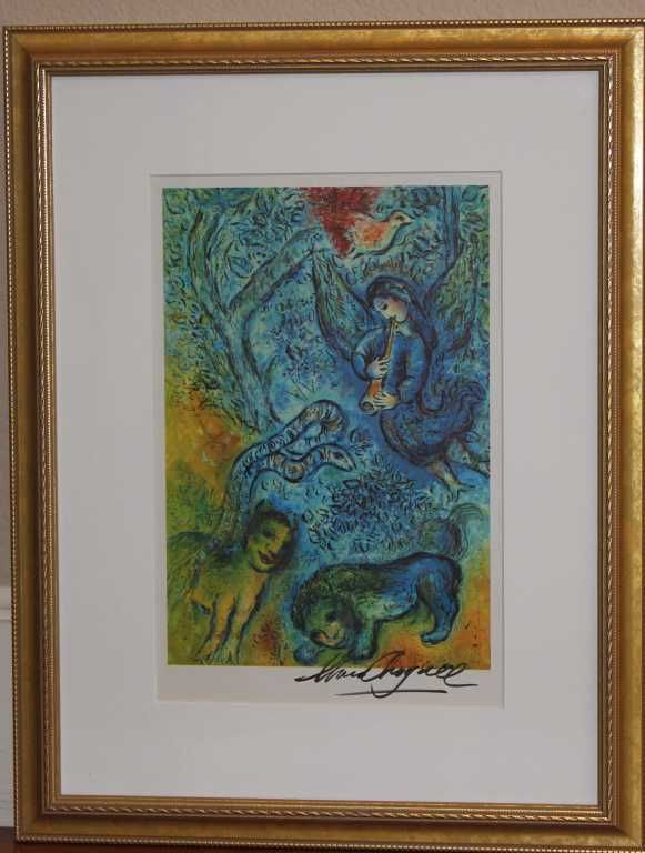 Marc Chagall Hand Signed Lithograph In Colors - Professionally Framed & Matted - Image Appx 9X13 - Framed Appx 16x20