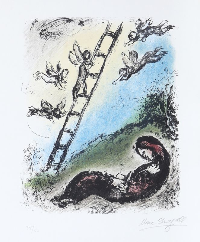 Marc Chagall, Jacob and the Angels (M. 966), Lithograph
