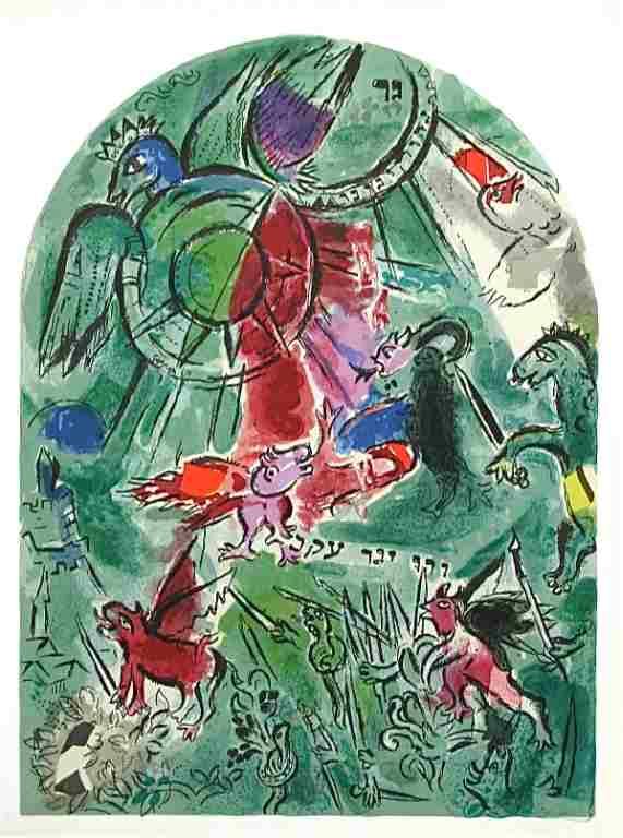 Marc Chagall "Tribe Of Gad" Jerusalem Windows Lithograph - Final Design For The "Jerusalem Windows" Series. Executed By Chagall In Preparation For His Famous Stained-Glass Windows For The Synagogue At The Hadassah-Hebrew University Medical Center In The Judaean Hills; A Different Composition Was Created For Each Of The Twelve Tribes Of Israel. Image Size: 11 5/8 X 8 1/2 Inches (295 X 215mm). The Lithography Was Done Under The Direction Of Marc Chagall And Printed By Mourlot In 1962. - Professionally Framed & Matted - Comes With Certificate - -