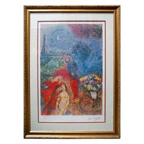 <tr><td>Title:Marc Chagall Lithograph of Lovers in Paris</td></tr>